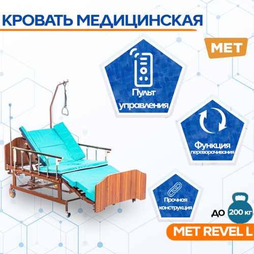 Кровать для лежачих больных MET BLY-1 Eva с переворотом, с т/у, без АКБ, с матрасом, электрическая