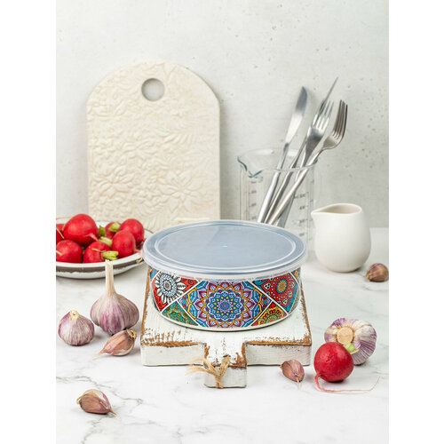 Миска эмалированная стальная "Эдем" с пластиковой крышкой, миска для готовки и хранения 1,1 л