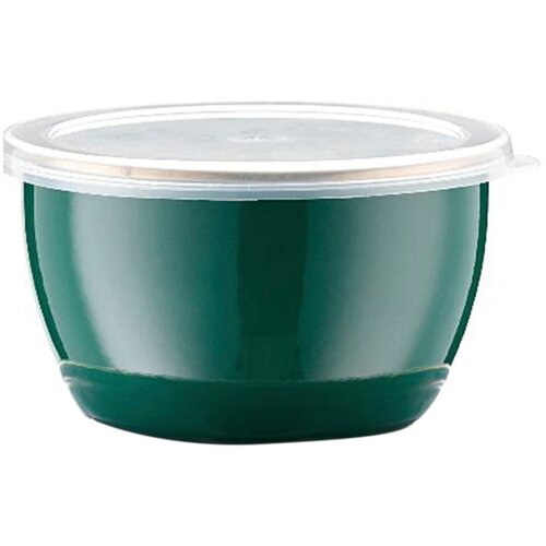 «Ретро» Миска эмалированная 1,1л, форма «Спэшл», круглая, ободок из нержавеющей стали, пластмассовая крышка (Сербия)