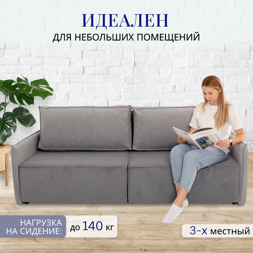 Диван-кровать MF-SOFA Лофт мини, 187х87х76 см, серый велюр Loft mini 32