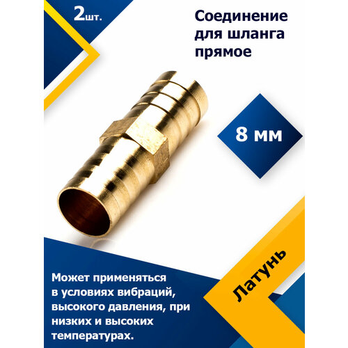 Соединение для шланга прямое латунь 8 мм