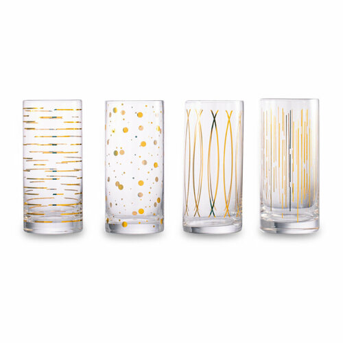Набор стаканов для воды Mikasa Cheers 470 мл, 4 шт, стекло, золотистый декор, п/к