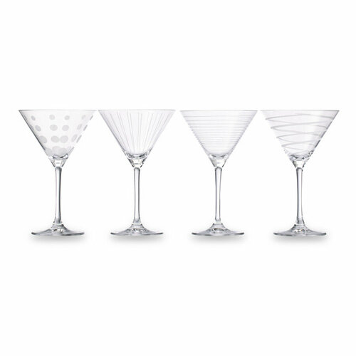 Набор бокалов для мартини Mikasa Cheers 290 мл, 4 шт, стекло, серебристый декор, п/к