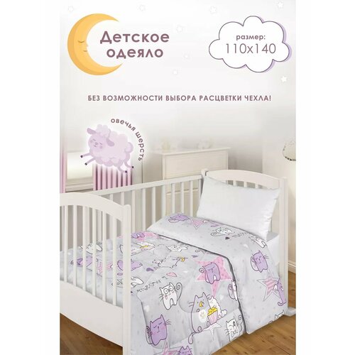 Одеяло детское в кроватку в коляску 110x140 см Овечья шерсть