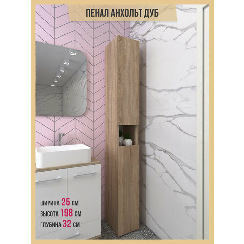 Шкаф напольный для ванной Анхольт Белый-Дуб