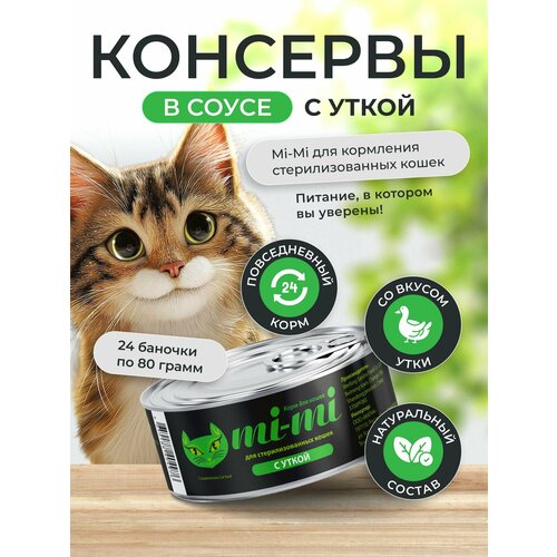Консервы для стерилизованных кошек Mi-Mi с уткой в соусе 80г, 24 шт, Китай
