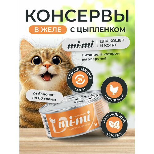 Консервы для кошек и котят Mi-Mi с Цыпленком, кусочки в желе 80г, 24 шт.