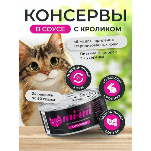 Консервы для стерилизованных кошек Mi-Mi с кроликом в соусе 80г, 24 шт, Китай