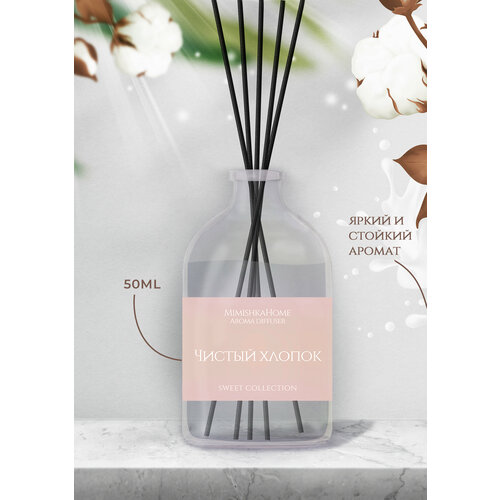 Ароматический диффузор для дома - Чистый хлопок, ароматизатор с палочками, 50мл