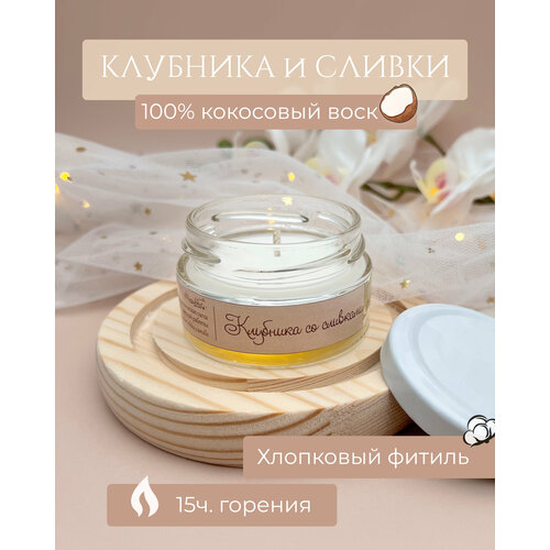 Свеча ароматическая из кокосового воска, Клубника со сливками - 100мл 1шт