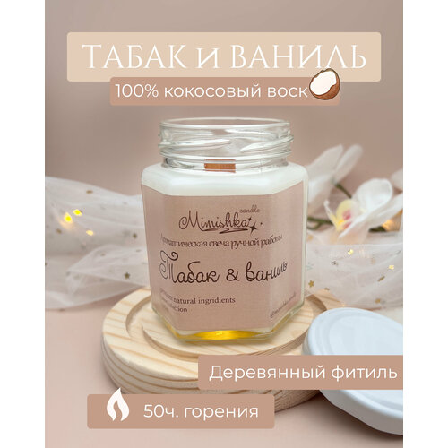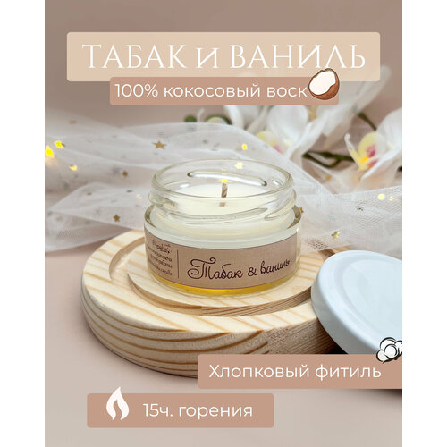 Свеча ароматическая из кокосового воска, Табак и ваниль - 50мл 1шт