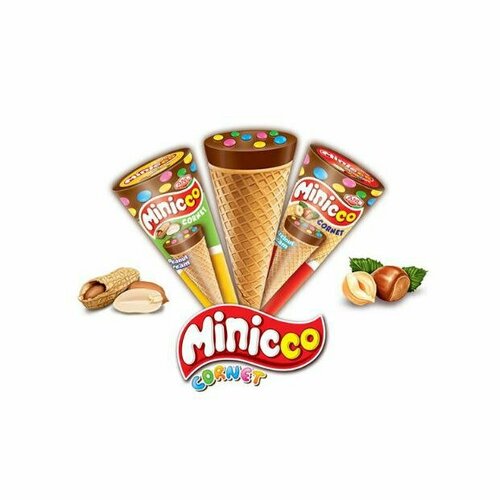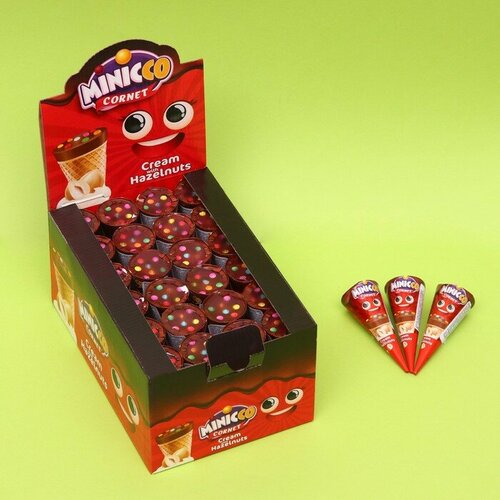 Изделия кондитерские сахаристые "Minicco" Вафельный рожок с арахисовым кремом, молочным шоколадом и драже 100гр
