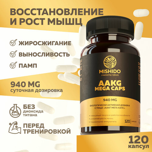 Аргинин AAKG MEGA CAPS MISHIDO, 120 капсул 940 мг