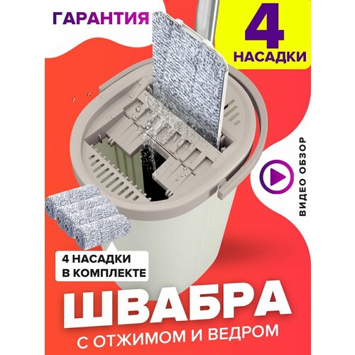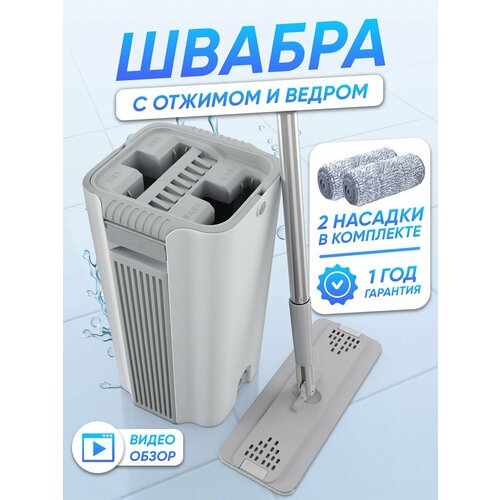 Mobby / Швабра с отжимом и ведром для полоскания , комплект для уборки и мытья пола , ведро для мытья полов , швабра с ведром