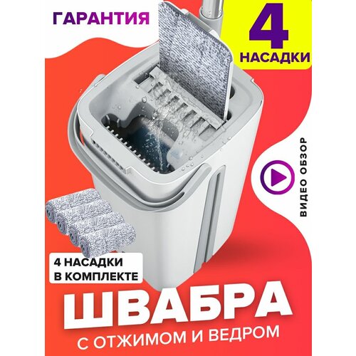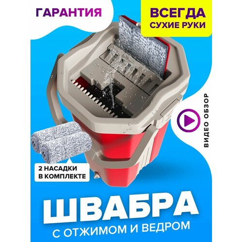 Швабра с отжимом и ведром для полоскания