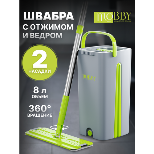 Mobby Швабра с отжимом и ведром для мытья полов с микрофиброй