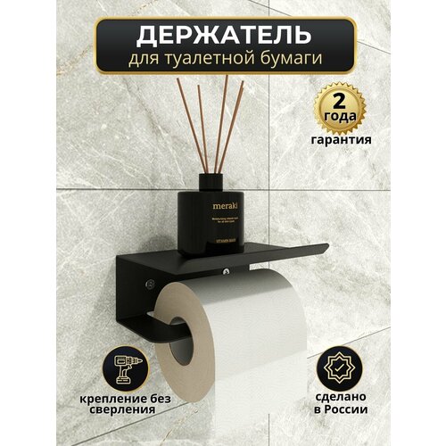 Держатель для туалетной бумаги навесной с полкой для телефона, матовый лофт/ полка для туалета без сверления