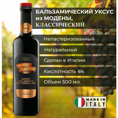 Monari Federzoni - это итальянский бренд, специализирующийся на производстве и продаже бальзамического уксуса. Бренд был основан в 1912 году Марио Монари и Энрико Федерцони в городе Модена, Италия. С тех пор компания стала одним из ведущих производителей бальзамического уксуса в Италии и за ее пределами.