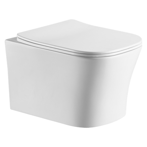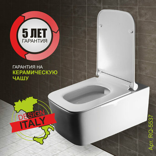 Унитаз (чаша) санитарный фарфор 570*370*345 подвесной безободковый с горизонтальным (прямым) выпуском с ультра-тонким сиденьем, MONTERNO RQ-5537