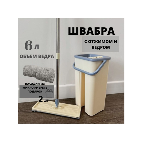 Швабра для уборки\ с отжимом и ведром 6 л\ набор для уборки\ 2-насадки