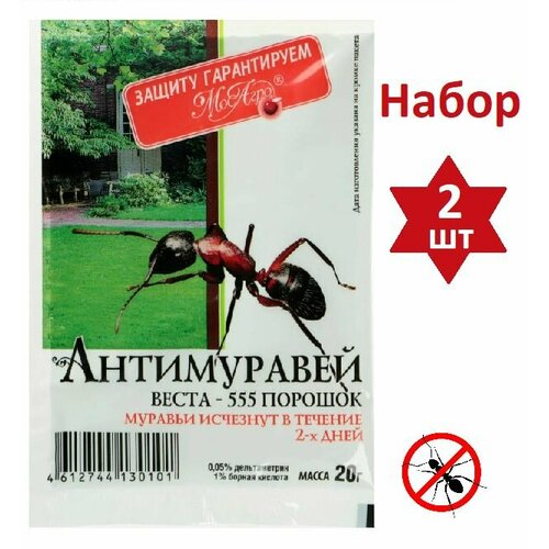 Антимуравей Веста-555 порошок, средство для уничтожения муравьёв, 20г (2 шт)