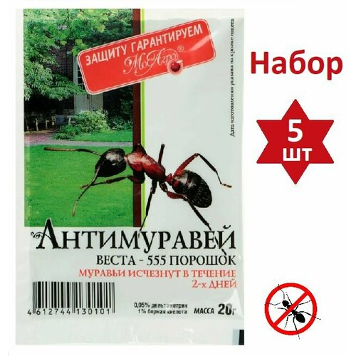 Антимуравей Веста-555 порошок, средство для уничтожения муравьёв, 20г (5 шт)