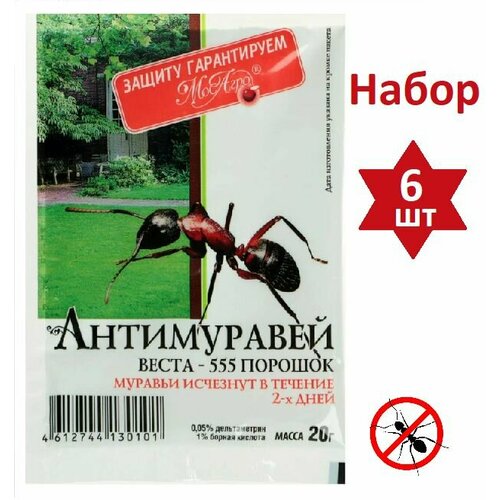 Антимуравей Веста-555 порошок, средство для уничтожения муравьёв, 20г (6 шт)