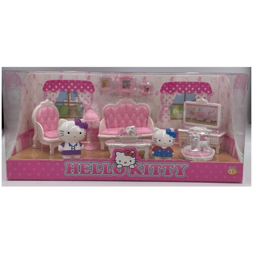 Набор мебели для кукольного домика "Кошкин дом". Гостиная кошечки (Диван, кресло, ТВ и собачка). Кукольный набор.