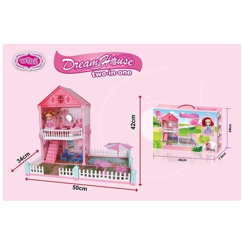 Кукольный домик с куклой. Двухэтажный домик для кукол. Игровой набор "Dream House" two in one (2 в 1). 91 деталь. В собранном виде: 50х42х34 см