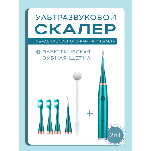Скалер ультразвуковой и электрическая ультразвуковая зубная щётка 2в1 зелёная