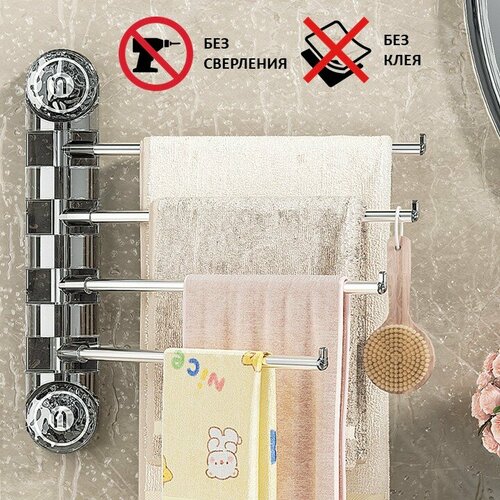 Держатель для полотенец MrBasket на вакуумных присосках, 4 перекладины