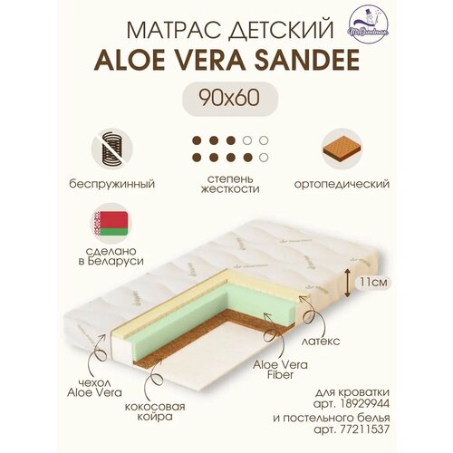 Матрас детский в кроватку для новорожденных Mr Sandman Aloe Vera Sandee 90х60 см
