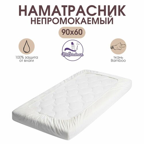 Наматрасник защитный Mr Sandman непромокаемый на резинке для матраса Sandee, 90х60