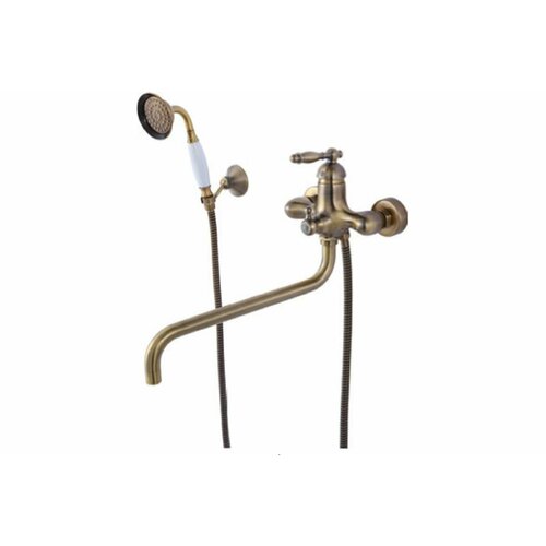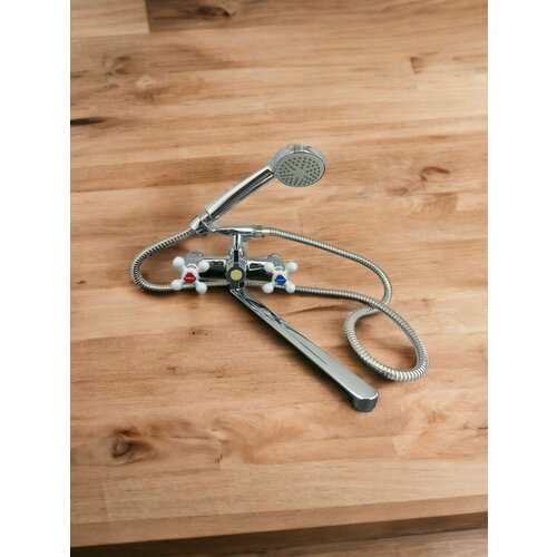Смеситель для ванны MYNAH двухвентильный, поворотный круглый излив 300 мм. Аэратор. Шланг 1.5 м. Материал латунь.