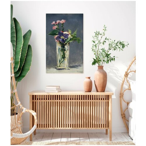 Репродукция Эдуарда Мане "Гвоздики и клематисы в хрустальной вазе" / 40х60 / Интерьерная картина на холсте / в кухню / в спальню / в гостиную