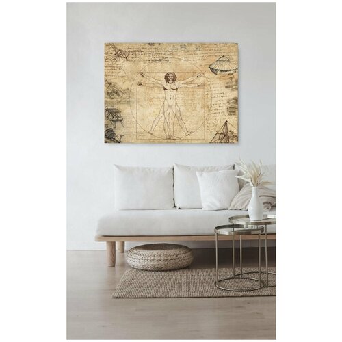 Репродукция Леонардо Да Винчи "Анатомический чертёж" / 45х60 / Интерьерная картина на холсте / в кухню / в спальню / в гостиную / на стену