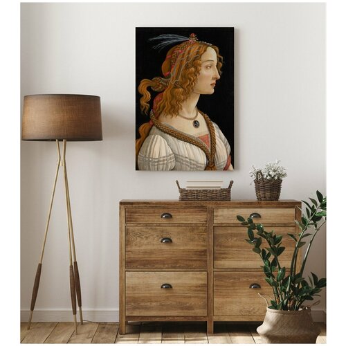 Репродукция Сандро Боттичелли "Портрет Симонетты Веспуччи в образе нимфы" / 40х60 / Интерьерная картина на холсте / в кухню / в спальню / в гостиную