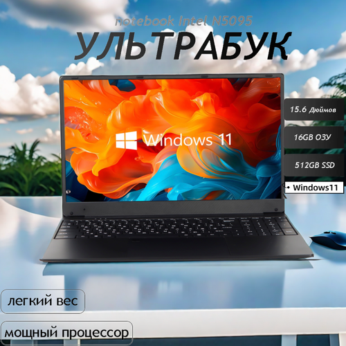 Ноутбук 15.6, Intel Celeron processor N5095 , RAM 16 ГБ, SSD 512 ГБ, Intel UHD Graphics , Windows 11, Черный , Русская раскладка Студенческие игры ноутбуки, рабочие ноутбуки