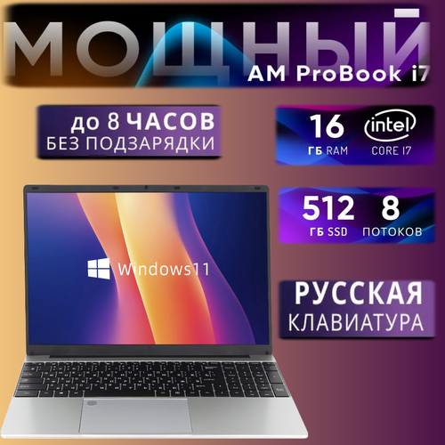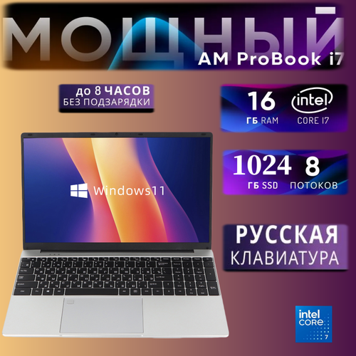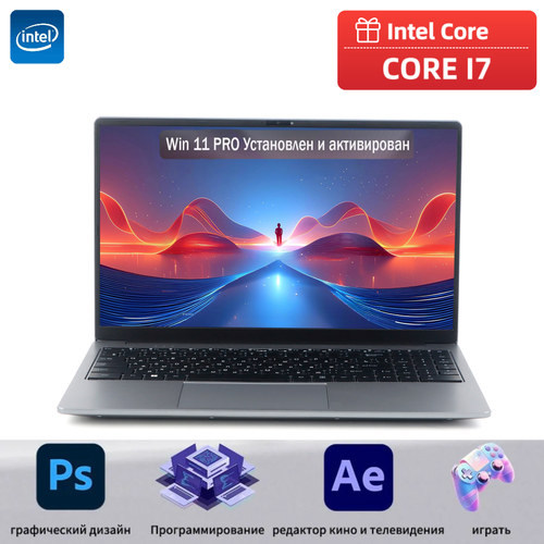Intel Core i7 (3.8 ГГц), Ноутбук 15.6" RAM 16 ГБ, SSD256ГБ, Intel UHD Graphics, Windows11 Pro, Русская раскладка Студенческие игры ноутбуки, Студенческие игры ноутбуки, рабочие ноутбуки