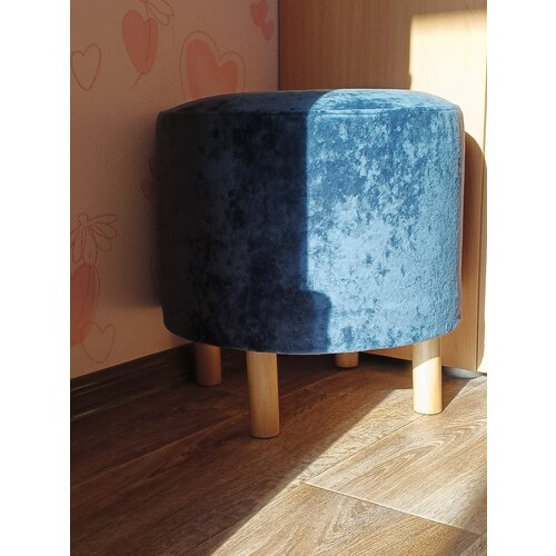 Пуф Круг, бархат тёмно-синий (индиго) цвет на деревянных ножках с войлочными подпятниками.