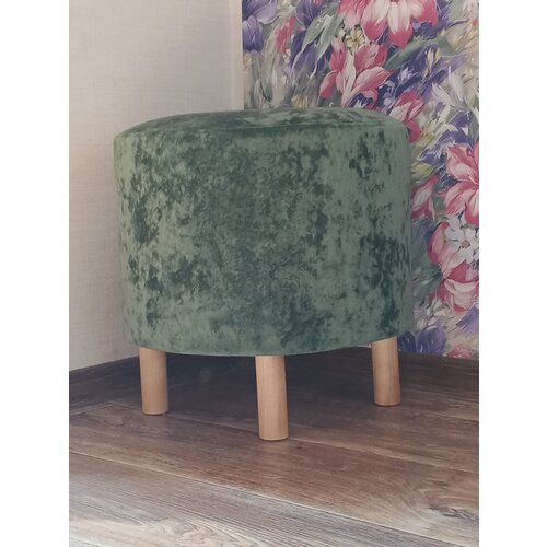 Пуф Круг, велюр зелёный бархат цвет на деревянных ножках с войлочными подпятниками.