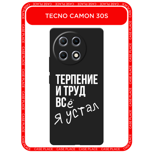Черный матовый чехол на Tecno Camon 30S / Текно Камон 30S с принтом Терпение и труд