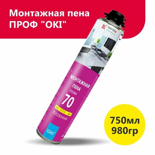 Монтажная пена ПРОФ "OKI" всесез с увел./ вых. 70 +. 750мл (980гр)