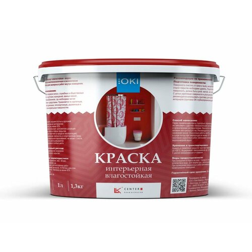 Краска OKI интерерная влагостойкая суп/бел /мат./ 1л /1,3кг/ 10 м 2