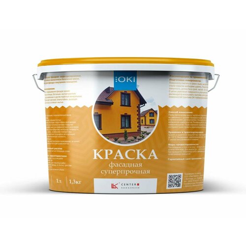 Краска OKI фасадная суперпрочная /мат./ суп/бел/ 1л /1,3кг/ 10 м 2