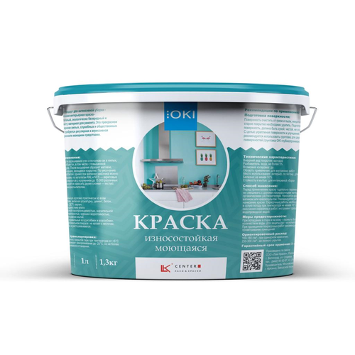 Краска OKI износостойкая моющ. интер /мат./ интенсивной убор суп/бел 1л /1,3кг/ 10 м 2