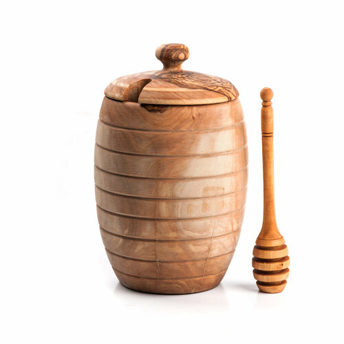 Бочонок для меда с ложкой Olivier большой, оливковое дерево