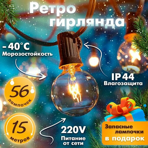 Гирлянда уличная лампочки 15 метров 56 лампочек OnHome