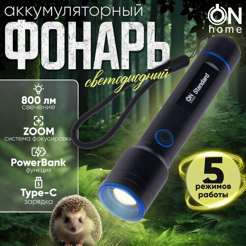 Фонарь светодиодный ручной аккумуляторный ON Home Standard с функцией мигания, черный