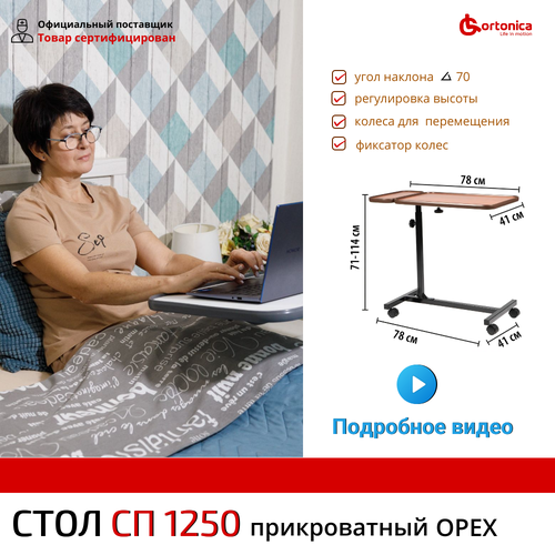 Стол прикроватный регулируемый по высоте на колесах с поворотной столешницей Ortonica СП 1250